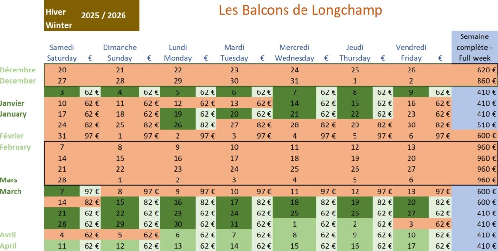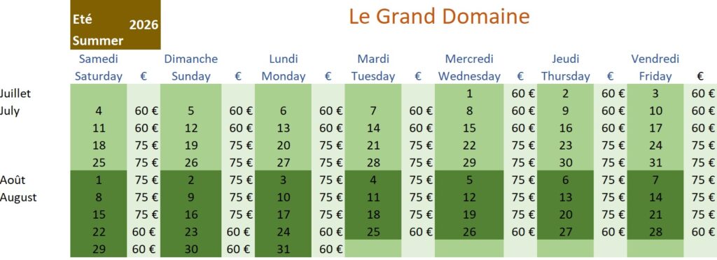 TARIFS ET DISPONIBILITES
